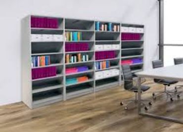 This shelving system assembles with no tools, braces, or hardware. These steel shelving units come with a limited lifetime warranty and are available in standard sizes, colors, and styles.