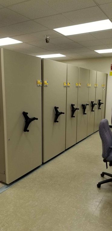 This office converted from electric assist to mechanical assist for their high density shelving and was able to extend the life of their original investment made 30 years ago.