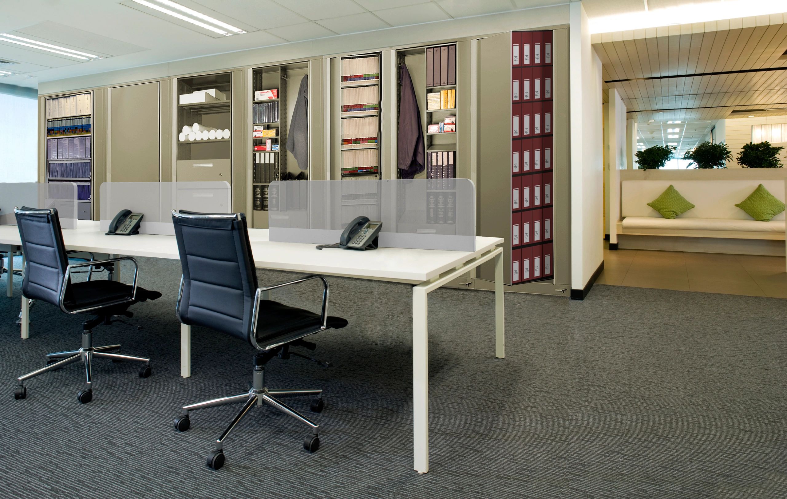 Unlike ordinary lateral files, the special rotary cabinet design takes space planning to a whole new level. You can save space, divide space, and place Times-2™ where no ordinary lateral cabinet can go.
