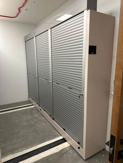 To address their security concerns, we installed secure roll-down tambour doors on the end unit of the mobile storage system. These doors provided an additional layer of protection, safeguarding their supplies from unauthorized access and potential damage. The doors were designed to be durable, tamper-proof, and offered enhanced security features.